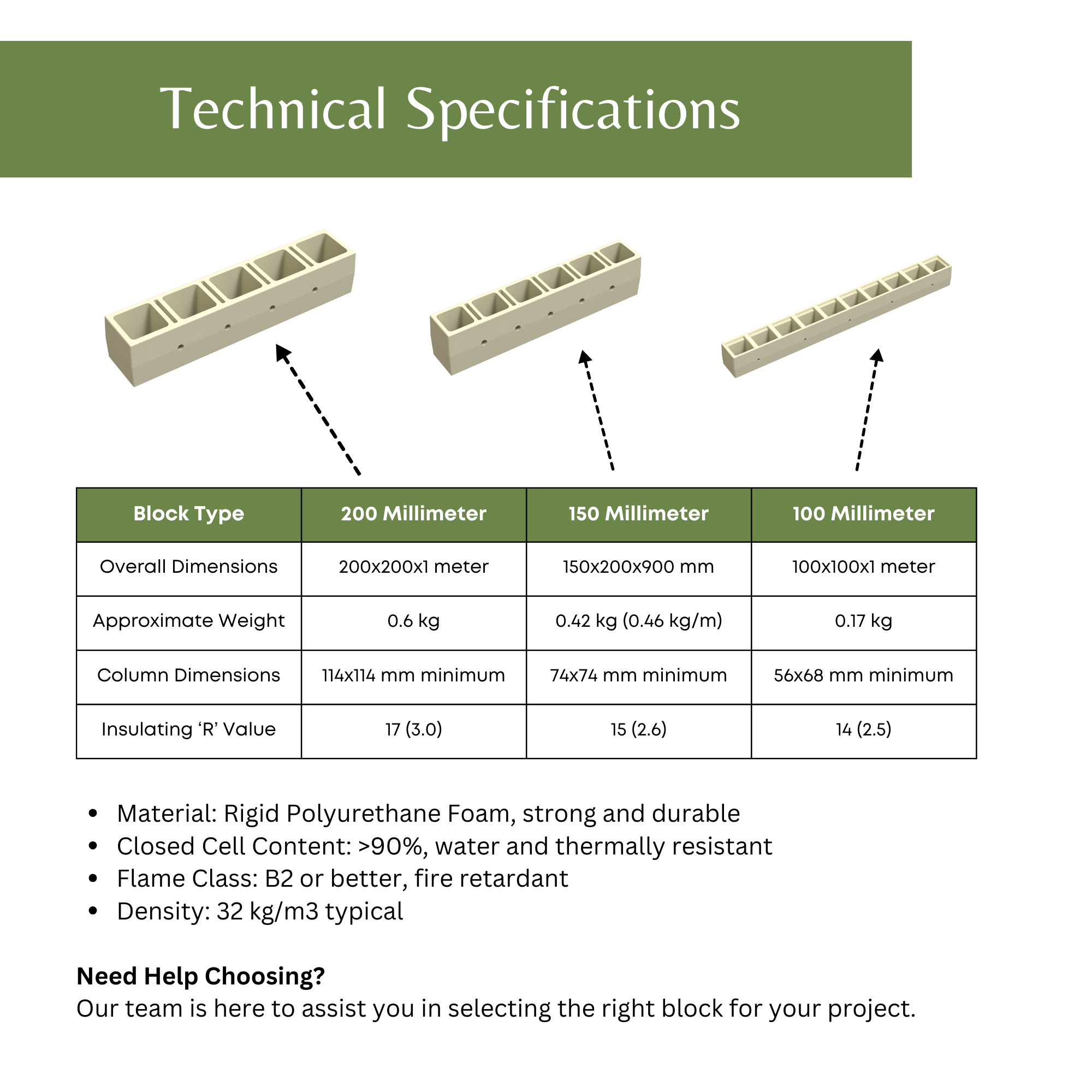 The block is the central element to Onsite ICF. They are molded out of rigid polyurethane foam and mass-produced onsite using a simple but elegant Reaction Injection Molding (RIM) method.